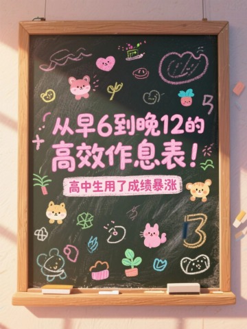 背景黑板,模拟黑板纹理,点缀粉笔可爱涂鸦,艺术字标题”从早6到晚12的高效作息表!高中生用了成绩暴涨“居中