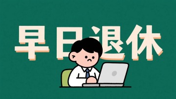 标题“早日退休”,有一个打工小人在看电脑,深绿色背景