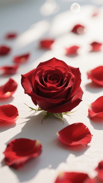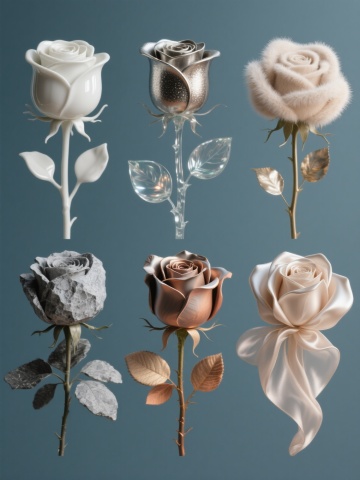 5. 微距镜头,半透明树脂浇筑的玫瑰静置在乳白色背景上,单线条表现为树脂流动时自然形成的波纹,花瓣内部封存着细小气泡,阳光透过时在表面形成柔和的彩虹色散,呈现温润如玉的朦胧质感。
