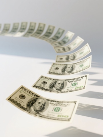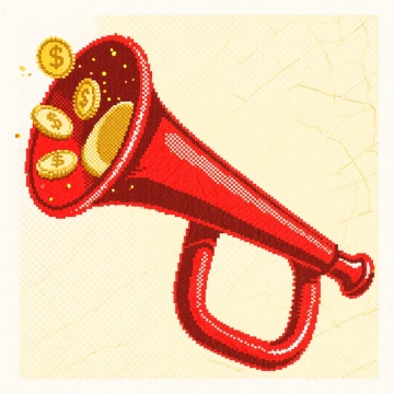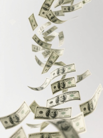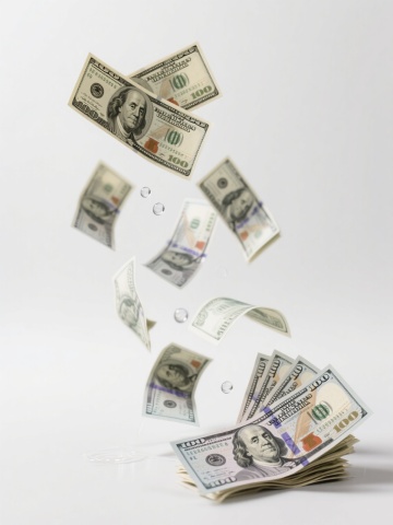 现代感3D风设计,超级符号美元标志,环绕金币与炫彩星星,彰显财富主题。