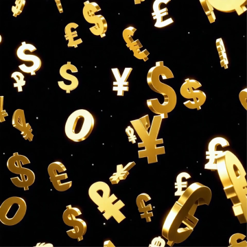 鎏金风3D货币符号悬浮于星空背景,金属质感与体积感交织,未来科技感十足,奢华视觉冲击力强。