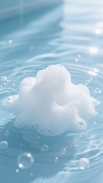 高清水下视角的泳池内部场景,池壁由整齐排列的浅蓝色瓷砖铺成,阳光透过水面在瓷砖上形成明亮的光斑和波纹倒影,水面波光粼粼,增添夏日清凉氛围,池底可见清晰的瓷砖纹理,整体色调以清澈的蓝白为主,光线柔和且富有通透感,营造出宁静、清爽、充满夏日气息的水下空间。