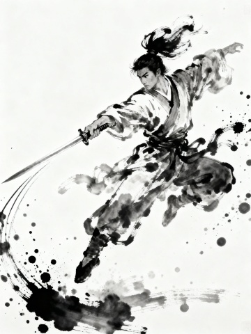 一个英俊的中国古代道长,飘逸的黑发,打太极