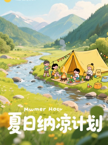 清新插画风,卡通人物携行李箱,大字“夏日出行计划”,展现夏日旅行的愉悦与期待。