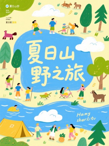 清新插画风,大字醒目,简约设计,邀你户外徒步,享受自然。