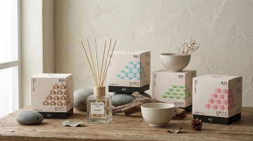 清新插画风,微缩艺术展现自然美景,茶盒设计融入山川元素,营造宁静氛围。