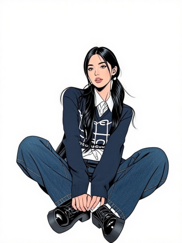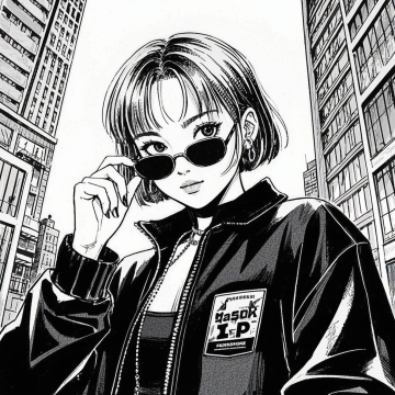 时尚感十足的插画风漫画,黑白对比鲜明,帽衫设计展现青春活力。