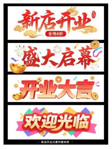 3D风格促销海报,金色大字突出新店开业优惠,简洁明了吸引眼球。