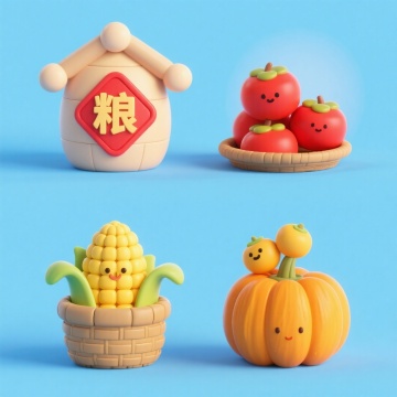 3D风格的卡通粽子,拟人化设计,塑料质感,可爱表情,端午节创意。