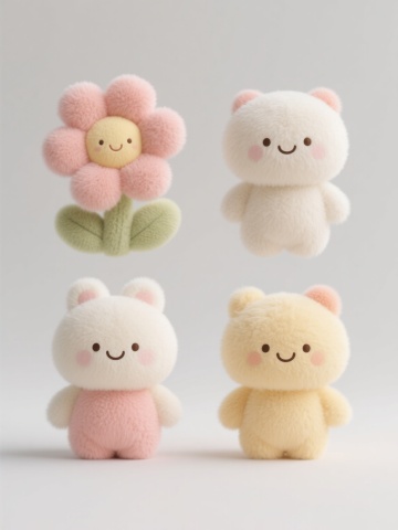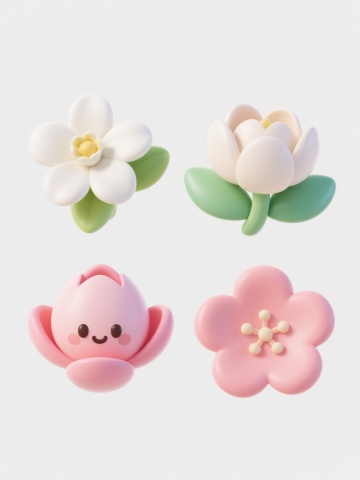 3D风卡通花朵,简约塑料质感,拟人笑脸设计,清新可爱。