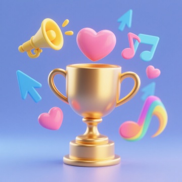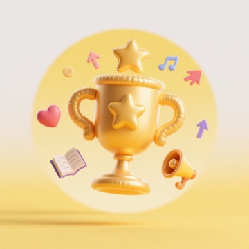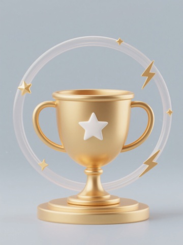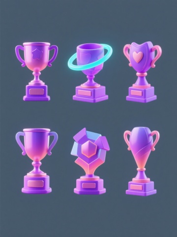 梦幻感的软3D风奖杯设计,紫色渐变光影效果,简约现代风格。