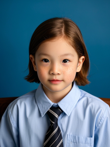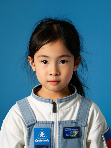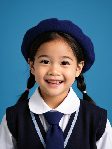 小朋友,小女孩,校服穿搭,表情生动,可爱,蓝色背景