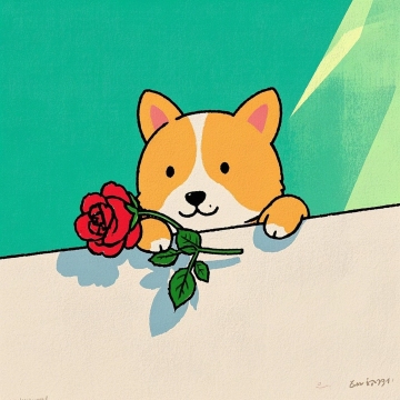 插画风卡通小狗,拟人化表情可爱温馨,简洁线条与明亮色彩营造欢乐氛围。