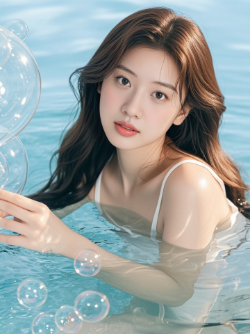 一张以女性面部为特写的美妆护肤主题照片,采用柔和的自然光从上方和侧面均匀照射,营造出明亮、纯净、温暖的氛围。画面中,一位年轻女性闭着双眼,嘴角微微上扬,露出恬静愉悦的微笑,双手轻轻捧起脸颊,姿态自然放松。她的皮肤呈现出极致的清透感、水润光泽和健康的粉嫩色调,肌肤表面仿佛覆盖着一层薄薄的精华液或保湿霜,反射出细腻的光泽,毛孔细腻几乎不可见,质感光滑柔嫩,充满弹性。深棕色的长发柔软地垂落在脸颊两侧,发丝轻盈飘逸,部分细碎的发丝自然散落,增添了画面的灵动与真实感。整体色彩以柔和的米白色为背景,衬托出肌肤的白皙与粉嫩,色调统一和谐,光影过渡自然,高光区域集中在额头、鼻梁、颧骨和下巴等面部高点,阴影柔和地勾勒出脸部的立体轮廓。照片的视觉焦点完全集中在女性完美无瑕的肌肤和愉悦的表情上,构图简洁大方,以人物面部为中心,背景干净无杂物,突出展现皮肤的水润状态和健康美感,传递出舒适、放松、享受护肤过程的情感,具有高度的视觉吸引力和信息传达效率,符合美妆护肤产品目标受众对理想肌肤状态的审美追求。