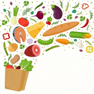 清新插画风,轻拟物设计,竹篮盛满蔬菜与麦穗,自然田园气息扑面而来。