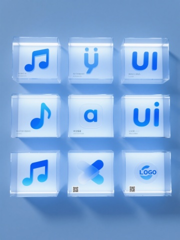科技感十足的3D玻璃风图标,轻拟物设计融合清透质感,未来感界面元素悬浮于简约背景,展现数字时代的视觉美学。