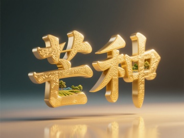 文案“芒种”,金色字体,绿色背景,洒金