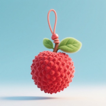 可爱拟人化的荔枝玩偶,采用面料风设计,卡通感十足,仿佛在树间跳跃。