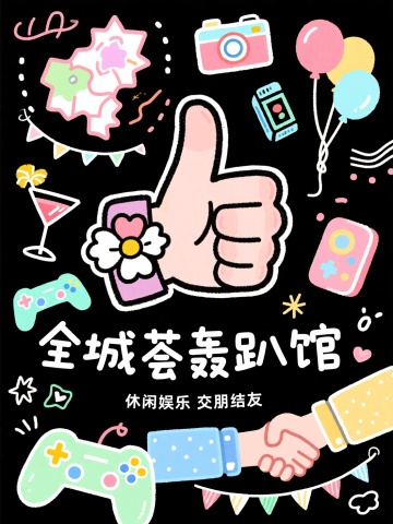 潮流卡通风格,大字描边设计,色彩鲜明,充满活力与趣味。