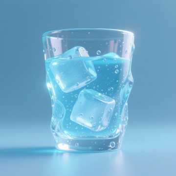3D轻拟物风设计,玻璃杯中冰块与气泡,清新蓝调,尽显夏日清爽感。
