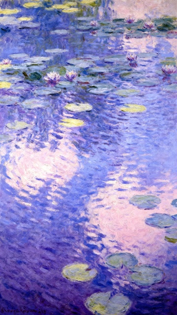 油画风野兽主义插画,色彩斑斓的泳池与秋叶,清新梦幻,人物悠闲。