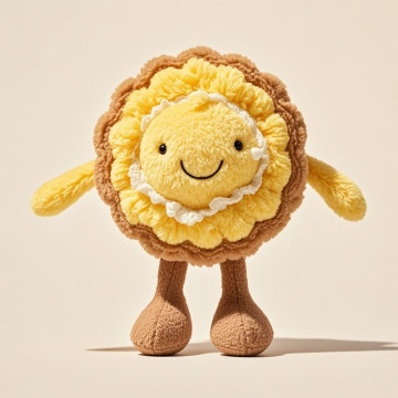 粉色桃子拟人化设计,卡通风格可爱生动,面料质感柔软温馨。