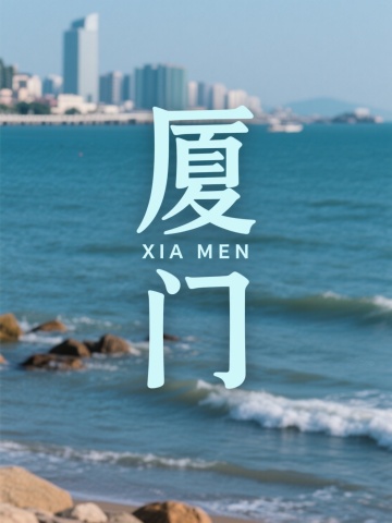 现代简约风格,大字风设计,实景海岸线背景,清新自然,展现厦门的清爽与时尚。