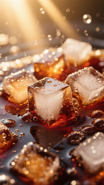 现代感3D风设计,清爽冰块与碳酸饮料碰撞,光影效果突出,轻拟物风格展现夏日清凉。