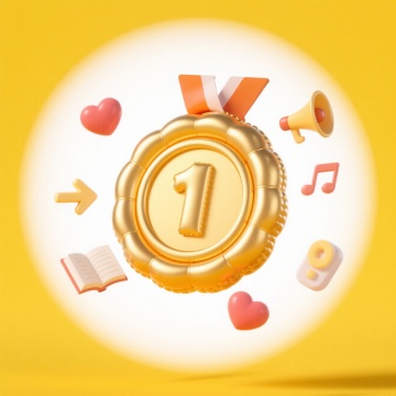 金色奖杯为主体,周围小元素点缀:桃心,箭头,喇叭,音符