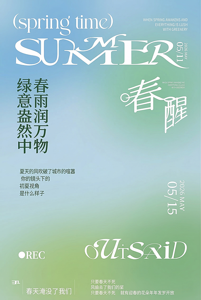 在当前图片基础上修改:将“春天是个盛大的形容词”替换为“听 春之声”,保持原有绿色和手写字体不变,对文字进行艺术感布局排列,字体调整为细一点;删除上方白色字体“Spring is a grand adjective”,其余内容保持不变详情