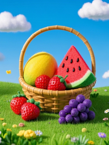 可爱卡通刺绣风西瓜,生动立体,色彩鲜艳,童趣十足。