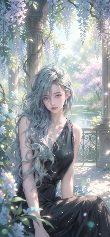 梦幻水彩插画风,柔光粒子环绕侧颜少女,鎏金发丝轻舞,光影流转间尽显唯美浪漫,如晨曦初照般温柔动人。