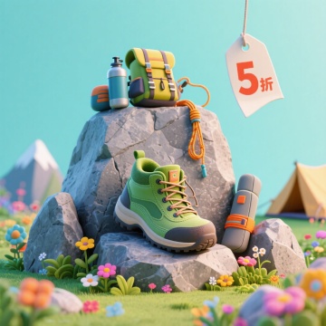 清新软3D风设计,数字“1”气球置于绿草坪,营造趣露营氛围