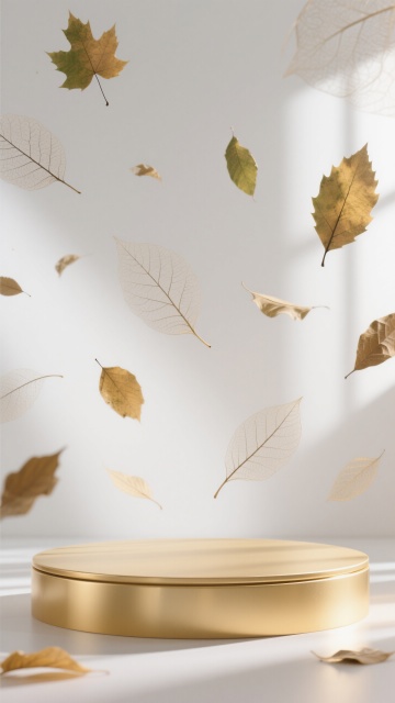 一个具有浓郁中式风格的室内场景,画面整体以米白色和原木色为主色调,营造出宁静、雅致、禅意的氛围。柔和的自然光从上方斜射下来,在背景墙上形成淡淡的光影层次,光线明亮且柔和,阴影过渡自然。画面中央偏下位置有一个圆形的原木色展台区域,展台表面光滑,边缘圆润。背景由左侧的中式木格栅、中间的圆形素色背景板和右侧的竖条木格栅组成,木格栅线条简洁规整,圆形背景板干净素雅。左侧展台旁摆放着一盆翠绿的竹子,叶片舒展,增添了生机与自然气息。整个画面构图注重留白,留空区域约占70%,形成了疏朗有致的视觉效果,展现出中式美学中“少即是多”的意境,整体风格统一、和谐,给人一种静谧、舒适、古朴而不失现代感的视觉体验。