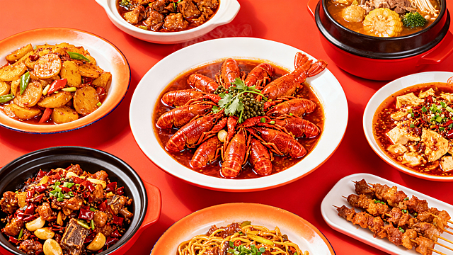 现代简约风格,大字风突出“麻辣小龙虾”,喜庆红色调,蒸汽效果增强食欲。详情
