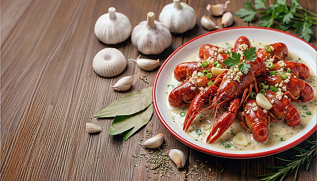 [主图 8] 私厨小龙虾蒜香口味成品展示 [氛围风格] 食欲诱惑,新鲜出炉 [画面元素] 商业摄影质感,光线柔和通透,产品清晰真实,画面干净高级。使用用户上传图片,保留原有蒜香小龙虾搭配千张香菜的成品外观,突出蒜香浓郁的诱人状态,蒸汽感点缀,细节丰富,满铺无边框 [配色色系] 主色调:小龙虾鲜红色,香菜绿色,千张浅米色;暖调食欲配色 [视角构图] 居中特写构图,浅景深突出主体 [文字版式] 画面顶部主标题“【蒜香小龙虾】”大号深棕色粗体,不遮挡主体,文字清晰 [比例分辨率] 1:1比例,2k分辨率,文字清晰可辨,超高清 [负向提示词] 变形,水印,文字错乱,产品图模糊,背景杂乱详情