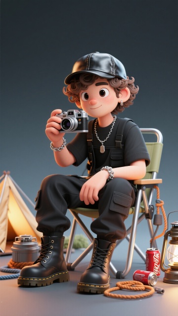 😎卷发型男手持相机,露营氛围感拉满🎞️