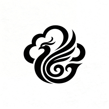 中式剪影风格,融合古典云纹与飞鸟形态,单色水墨意境,展现民族美学韵律。