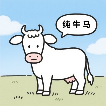 绿色的草地上,蓝色的天空,白色的云,小牛抱着电脑,伤心的哭泣