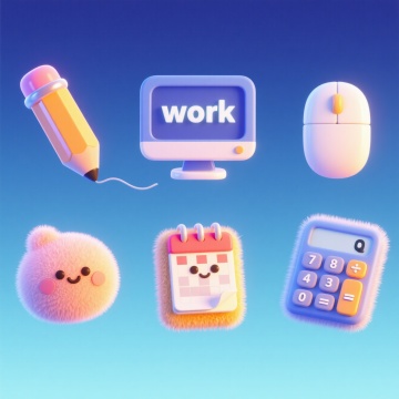 3D粘土风图标设计,可爱卡通拟人化,色彩柔和,趣味性强。
