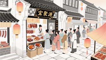 中式复古插画风,展现国潮轻拟物场景,水墨水彩融合,营造传统节日氛围。