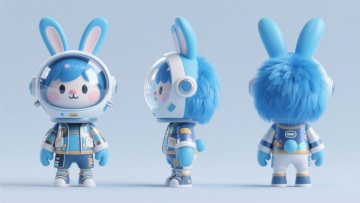 软3D风格的蓝色兔子宇航员,融合可爱感与科技感,拟人化设计展现未来感,适合节日IP形象。