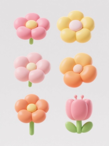 软3D风卡通花拟人设计,可爱感十足,色彩渐变生动,节日氛围浓厚。