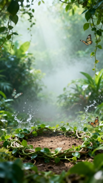 梦幻3D森林,清新水彩风,超现实蘑菇与苔藓共生,营造虚拟自然仙境。