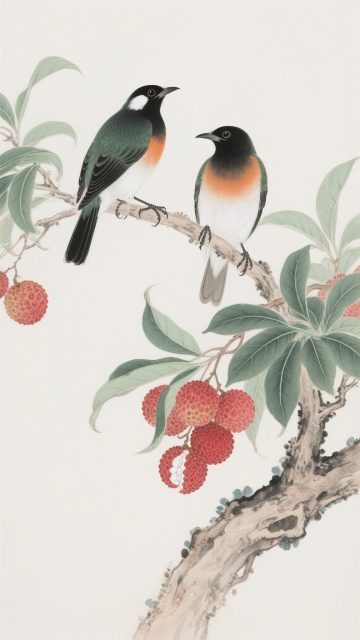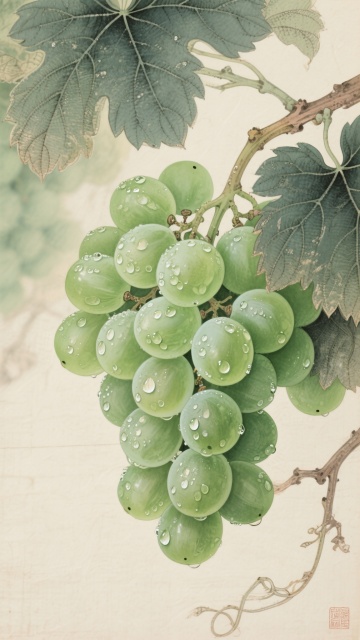 水墨风中式感,唯美感红果点缀,金箔添彩,意境深远。