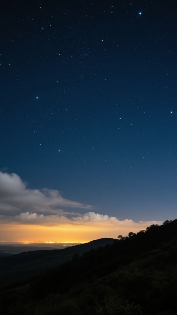 渐变深邃的夜空,深邃的靛蓝色至墨黑色的渐变背景,点缀着明亮的星星,几颗较大的星星散发着柔和的光芒,月亮挂在天空一侧,呈现出皎洁的白色,月光柔和地洒下,云层变得更加朦胧,呈现出淡淡的蓝灰色,整体氛围宁静而神秘,高清写实摄影风格,光线柔和,细节清晰,构图简洁,垂直画幅。