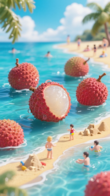 清新3D风荔枝,轻拟物设计,冰块点缀,夏日清凉感十足。