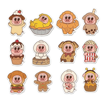 6个不同配色、不同样式的卡通交通工具造型,采用手绘贴纸风格,线条圆润简洁,色彩明快鲜亮,带有白色轮廓边,上下两行整齐排列在浅灰色背景上,整体风格活泼童趣,交通工具造型可包含汽车、飞机、火车、轮船、自行车、公交车等,保持与原图一致的卡通贴纸质感和明快色彩搭配。