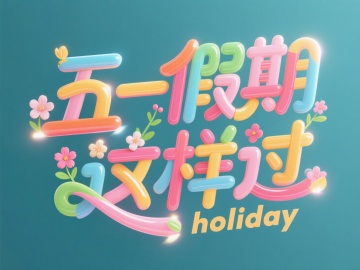 3D风大字设计,霓虹灯效果点缀,清新甜美,五一假期主题。