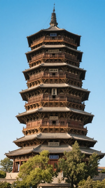 应县木塔的斗拱结构(顶部加塔尖)组成了”山西“;背景是平遥古城